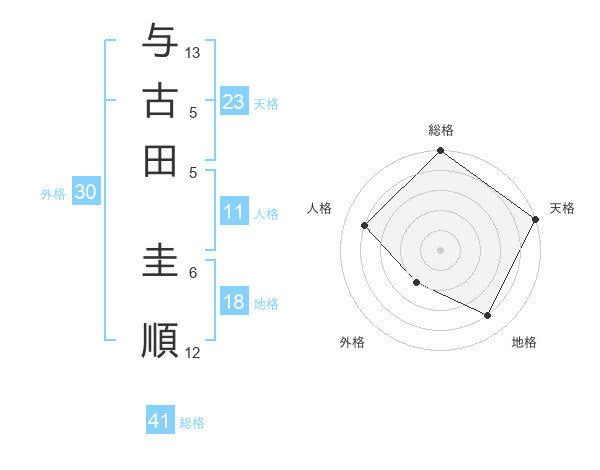 与古田 圭順さんの天格は23画の5点!