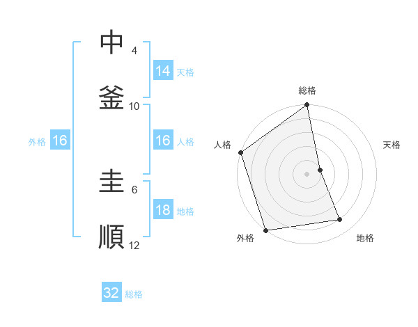 中釜 圭順さんの総格は32画の5点!