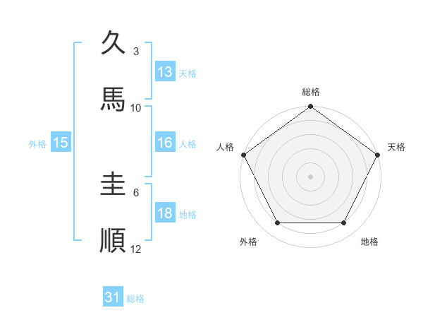 久馬 圭順さんを姓名の画数から五運を鑑定