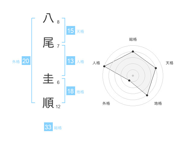 八尾 圭順さんを姓名の画数から五運を鑑定