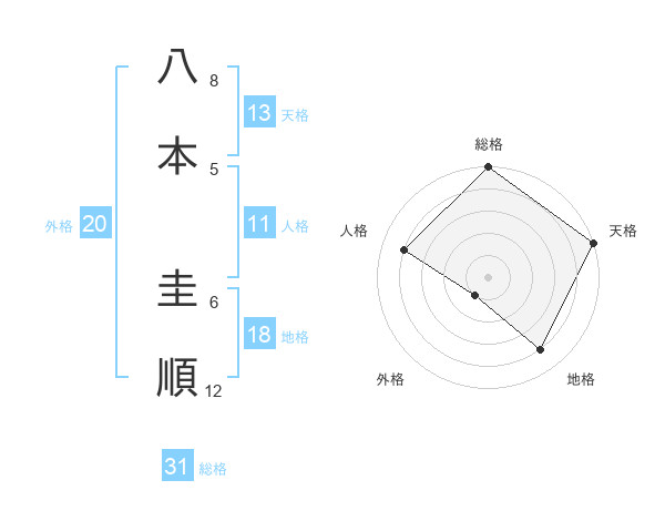 八本 圭順さんの総格は31画の5点!