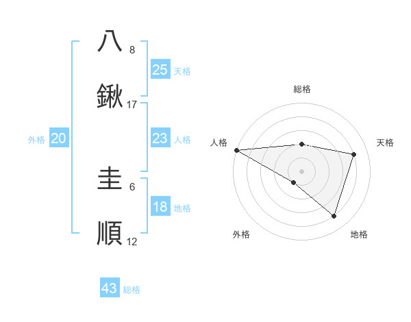 八鍬 圭順さんの人格は23画の5点!