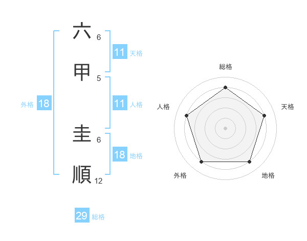 六甲 圭順さんの総格は29画の4点!