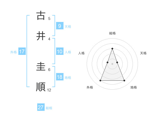 古井 圭順さんの総格は27画の3点!