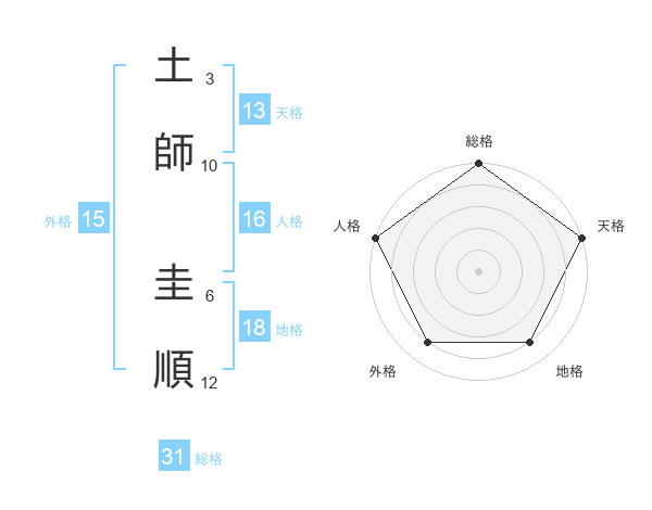 土師 圭順さんの総格は31画の5点!
