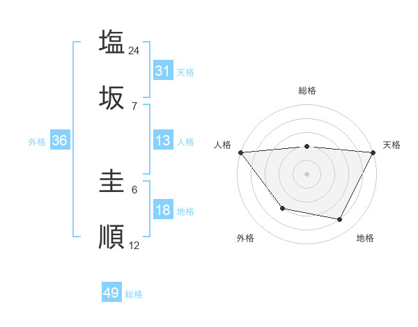塩坂 圭順さんの天格は31画の5点!
