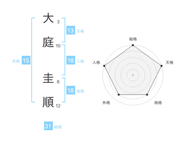 大庭 圭順さんの総格は31画の5点!
