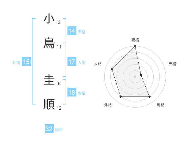 小鳥 圭順さんを姓名の画数から五運を鑑定