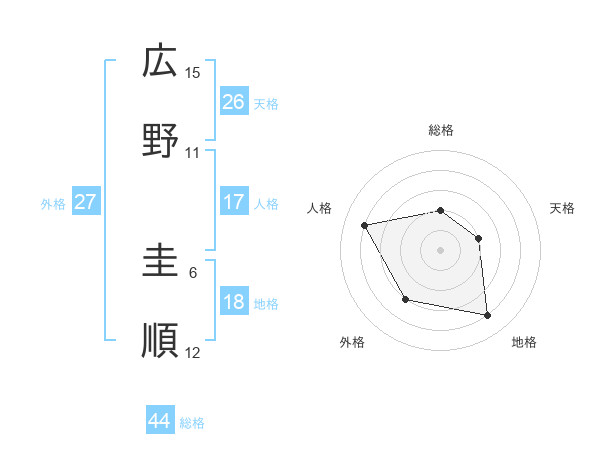 広野 圭順さんの総格は44画の2点!