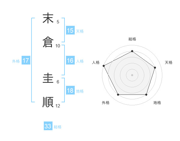 末倉 圭順さんの総格は33画の4点!