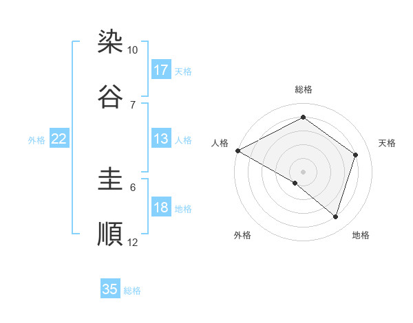 染谷 圭順さんの総格は35画の4点!