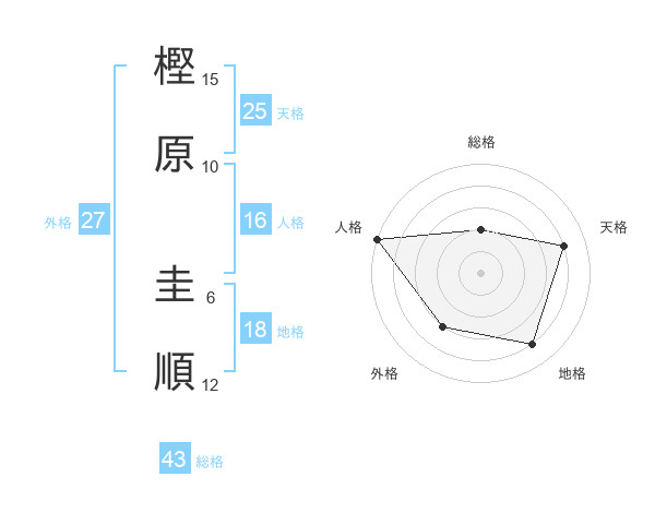 樫原 圭順さんの天格は25画の4点!