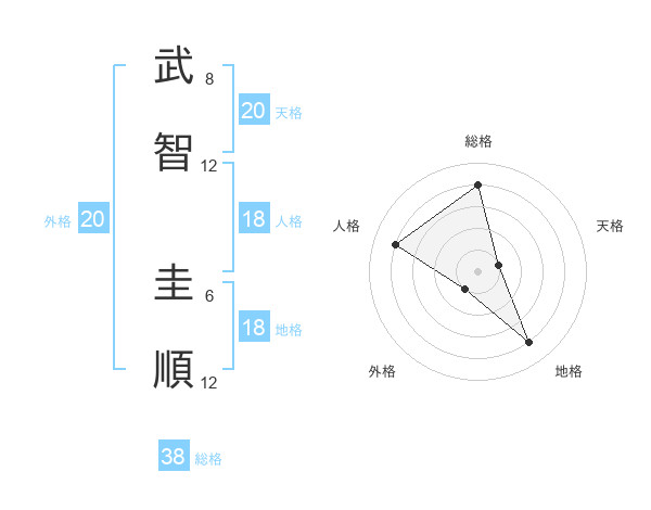武智 圭順さんの総格は38画の4点!
