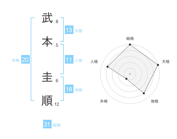 武本 圭順さんの総格は31画の5点!