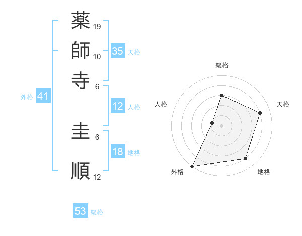 薬師寺 圭順さんを姓名の画数から五運を鑑定