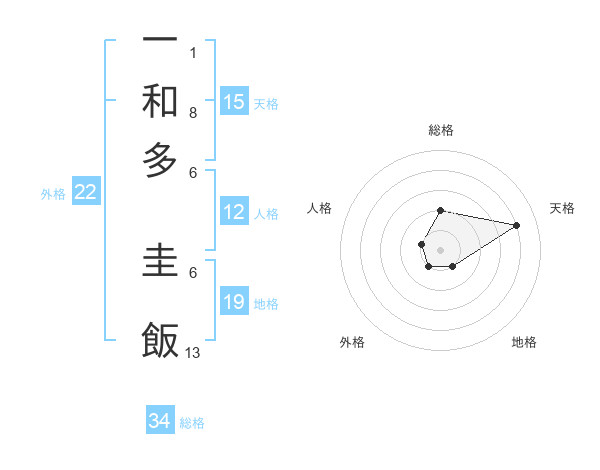 一和多 圭飯さんの天格は15画の4点!