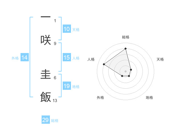 一咲 圭飯さんを姓名の画数から五運を鑑定