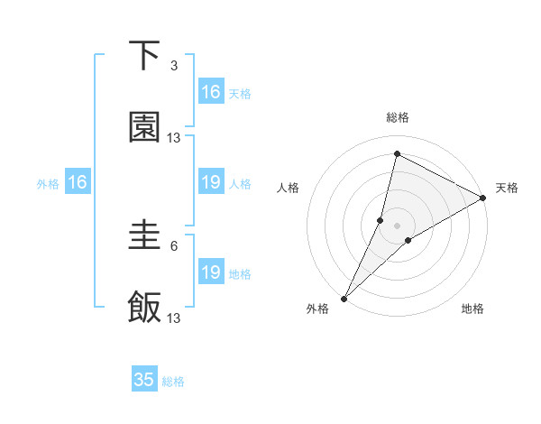 下園 圭飯さんを姓名の画数から五運を鑑定