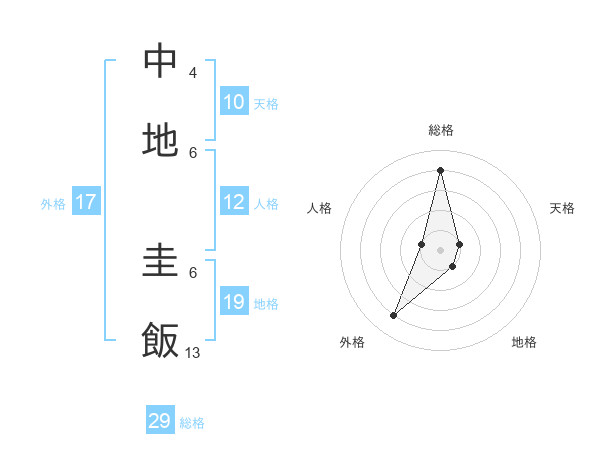 中地 圭飯さんの総格は29画の4点!