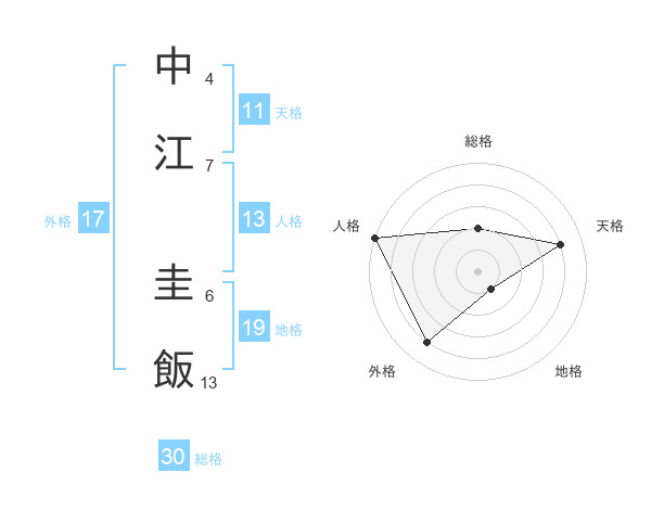 中江 圭飯さんを姓名の画数から五運を鑑定