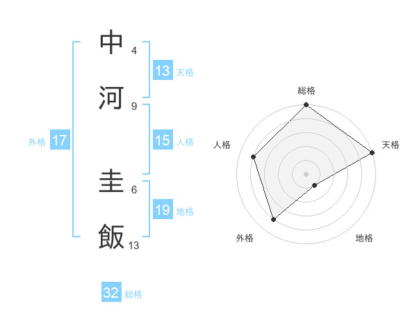 中河 圭飯さんの天格は13画の5点!