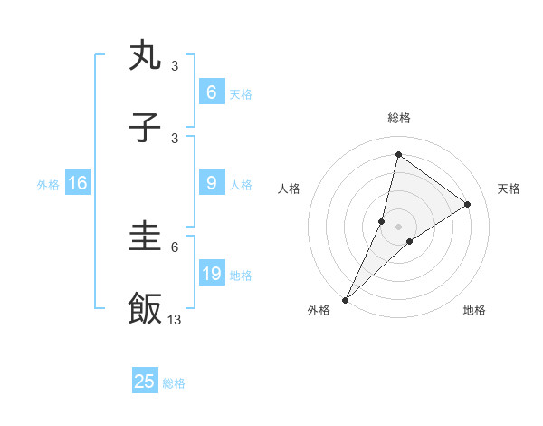 丸子 圭飯さんを姓名の画数から五運を鑑定