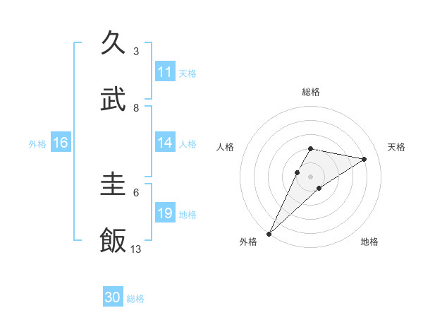 久武 圭飯さんの総格は30画の2点!