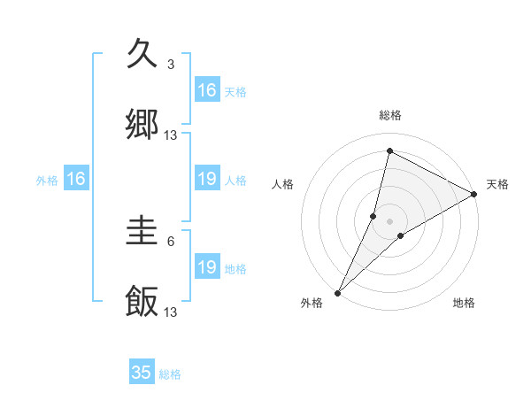 久郷 圭飯さんの総格は35画の4点!