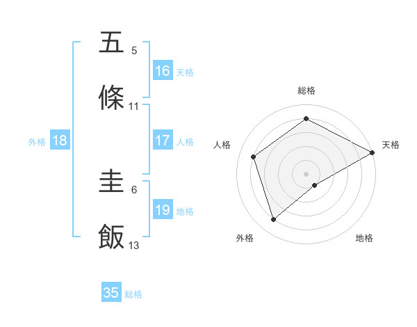 五條 圭飯さんを姓名の画数から五運を鑑定