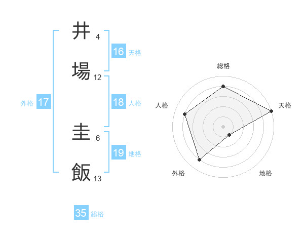 井場 圭飯さんの総格は35画の4点!