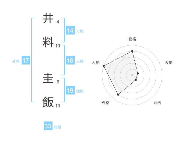 井料 圭飯さんを姓名の画数から五運を鑑定
