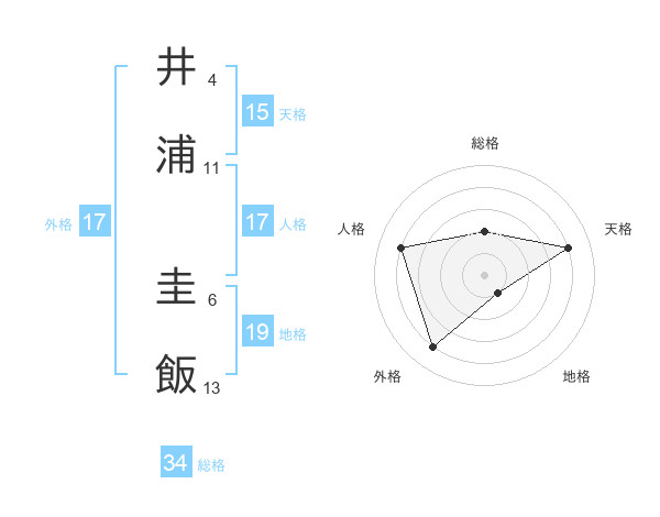 井浦 圭飯さんの総格は34画の2点!