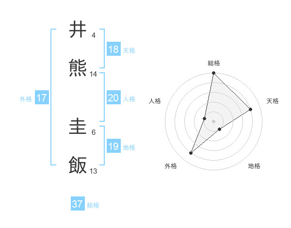 井熊 圭飯さんの総格は37画の5点!