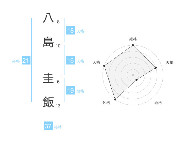 八島 圭飯さんの総格は37画の5点!