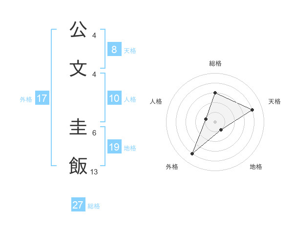 公文 圭飯さんの総格は27画の3点!