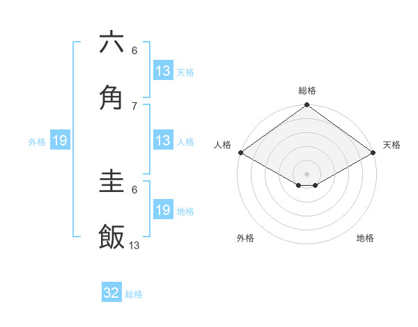 六角 圭飯さんを姓名の画数から五運を鑑定