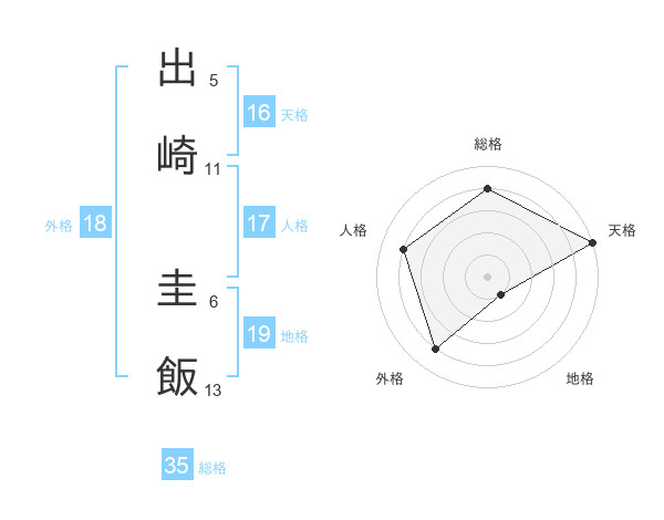出崎 圭飯さんの総格は35画の4点!
