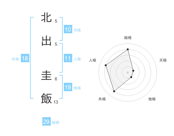 北出 圭飯さんを姓名の画数から五運を鑑定