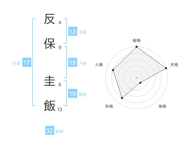 反保 圭飯さんの総格は32画の5点!