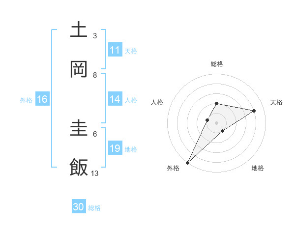 土岡 圭飯さんの総格は30画の2点!