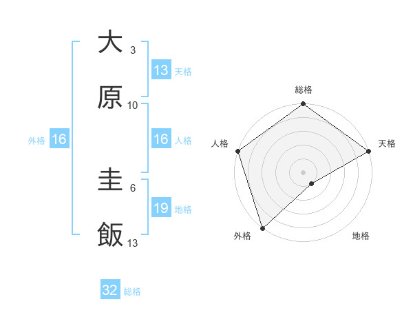 大原 圭飯さんを姓名の画数から五運を鑑定
