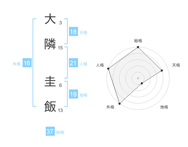 大隣 圭飯さんを姓名の画数から五運を鑑定