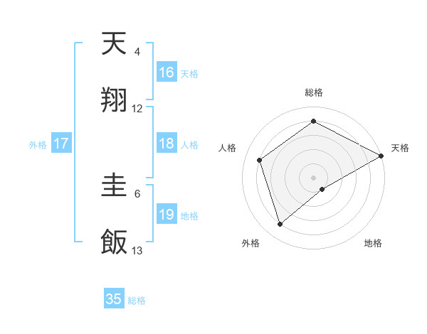 天翔 圭飯さんを姓名の画数から五運を鑑定
