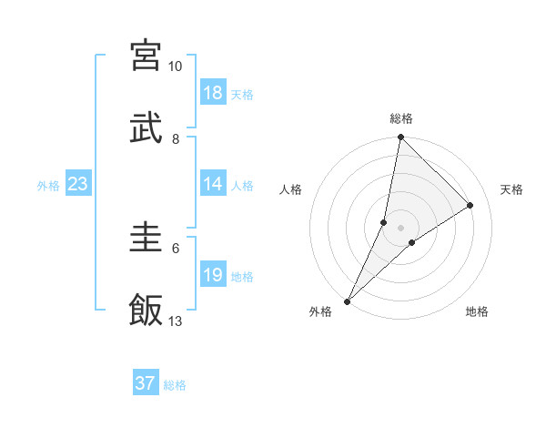宮武 圭飯さんの総格は37画の5点!