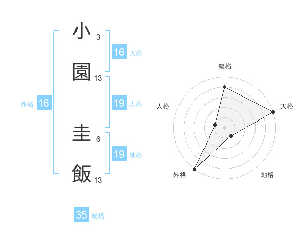 小園 圭飯さんの天格は16画の5点!