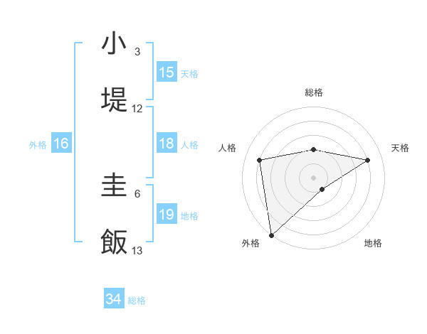 小堤 圭飯さんの総格は34画の2点!