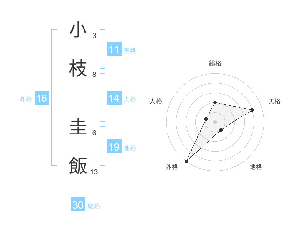 小枝 圭飯さんの総格は30画の2点!