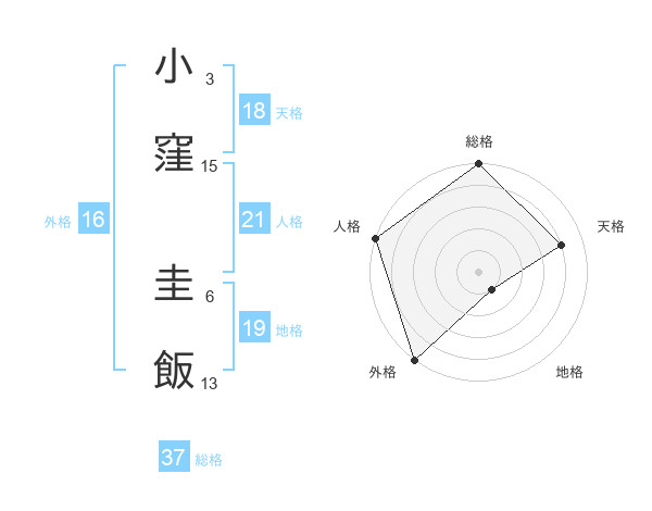 小窪 圭飯さんの総格は37画の5点!