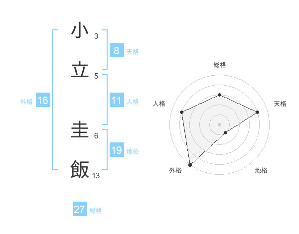 小立 圭飯さんの総格は27画の3点!