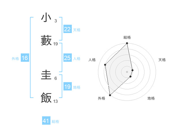 小藪 圭飯さんの総格は41画の5点!